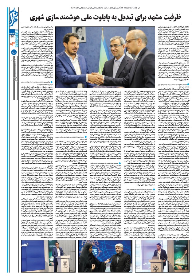 در حاشیه این رویداد تفاهم نامه ای در حضور استاندار محترم استان خراسان رضوی جناب آقای دکتر مظفری بین آقای دکتر محمد هادی زاهدی، رئیس انجمن ملی هوش مصنوعی ایران و حسن جمال بارانی، معاون برنامه ریزی و توسعه سرمایه انسانی شهرداری مشهد، منعقد شد. هدف از این تفاهم نامه، همکاری در حوزه آموزش، فرهنگ سازی و پیاده سازی هوش مصنوعی با محوریت حوزه های شهری و مکانی و همچنین تشریک مساعی در جهت برگزاری رویداد های مشابه در سطح مجمع کلان شهر های کشور با محوریت شهرداری مشهد می باشد.